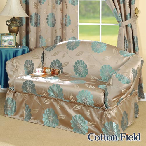 棉花田傢飾-【花藝】提花雙人沙發便利套-藍色
